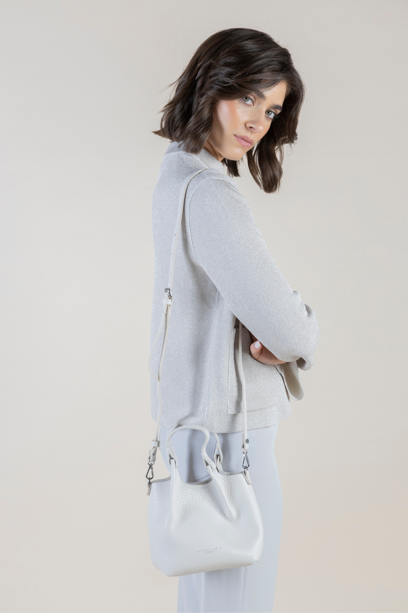 MATERIALS: 100% Italian Leather or Suede, Interior Magnetic Snap Closure, Detachable Adjustable Strap, Double Handles