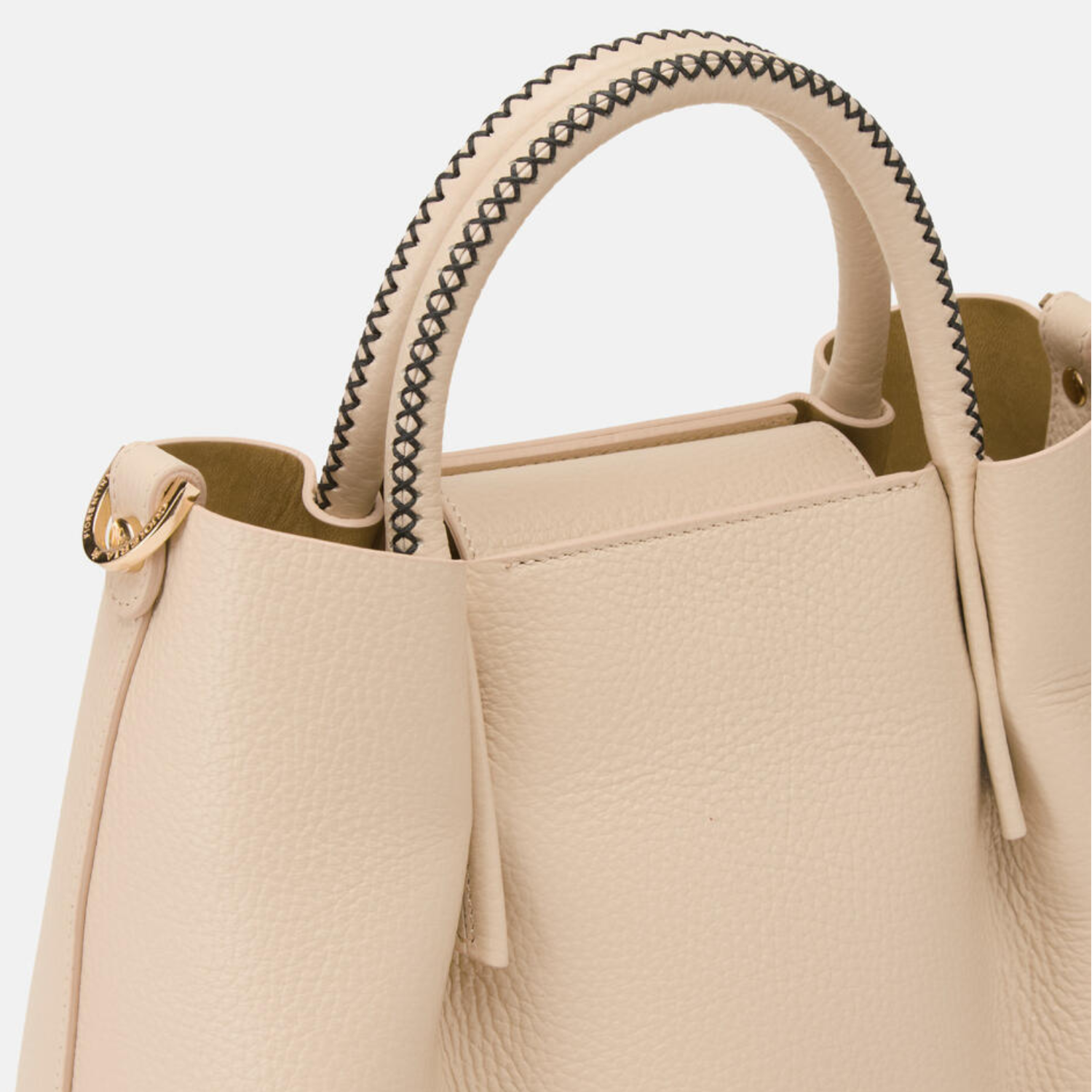 MATERIALS: Italian Leather, Internal Double Compartment, Removable Pouch with Zip Closure, Gold Embossed Logo, 4 Gold Feet, Double Handle (3.5' Drop), Removable and Adjustable Shoulder Strap, Flap Closure with Magnetic Button