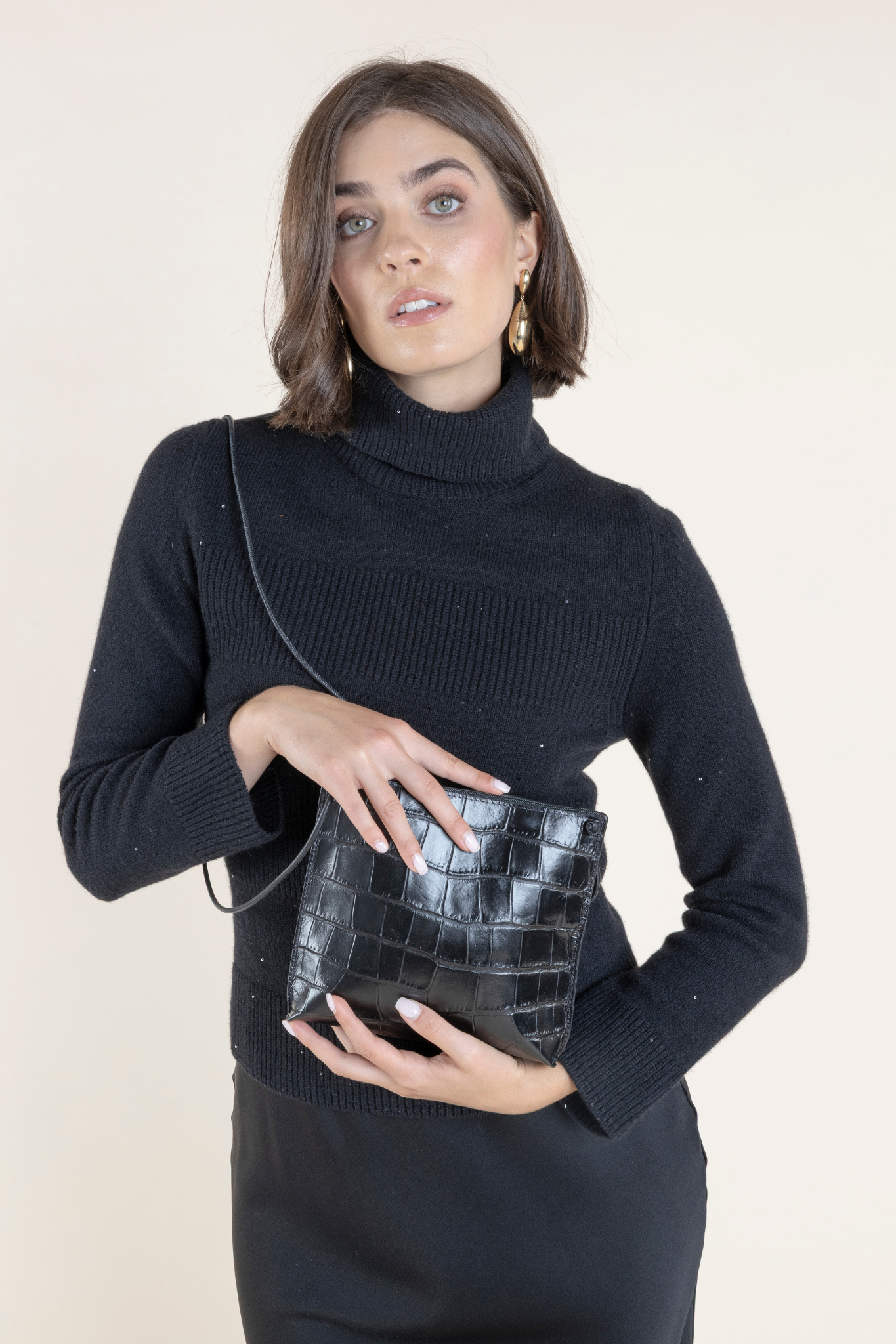 A sleek and versatile crossbody with a clean, modern silhouette, this piece features a compact square frame and a single top zipper closure for effortless access. The interior is lined in soft suede, offering a luxurious feel that complements its streamlined design. A slender leather rope strap provides an understated yet distinctive touch, allowing for comfortable hands-free wear. Available in a curated selection of smooth leather, rich embossed textures, and supple suede finishes, it’s a timeless accessory designed to move seamlessly from day to night