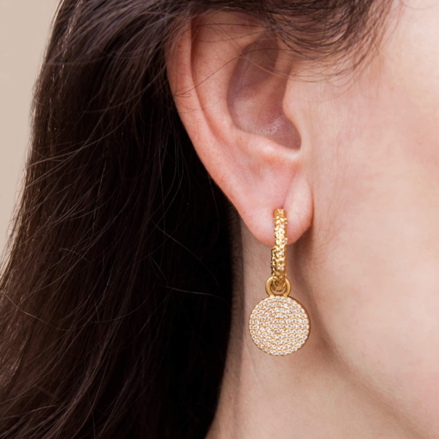 CRYSTAL HUGGIES WITH SLIDE ON PAVE DISC