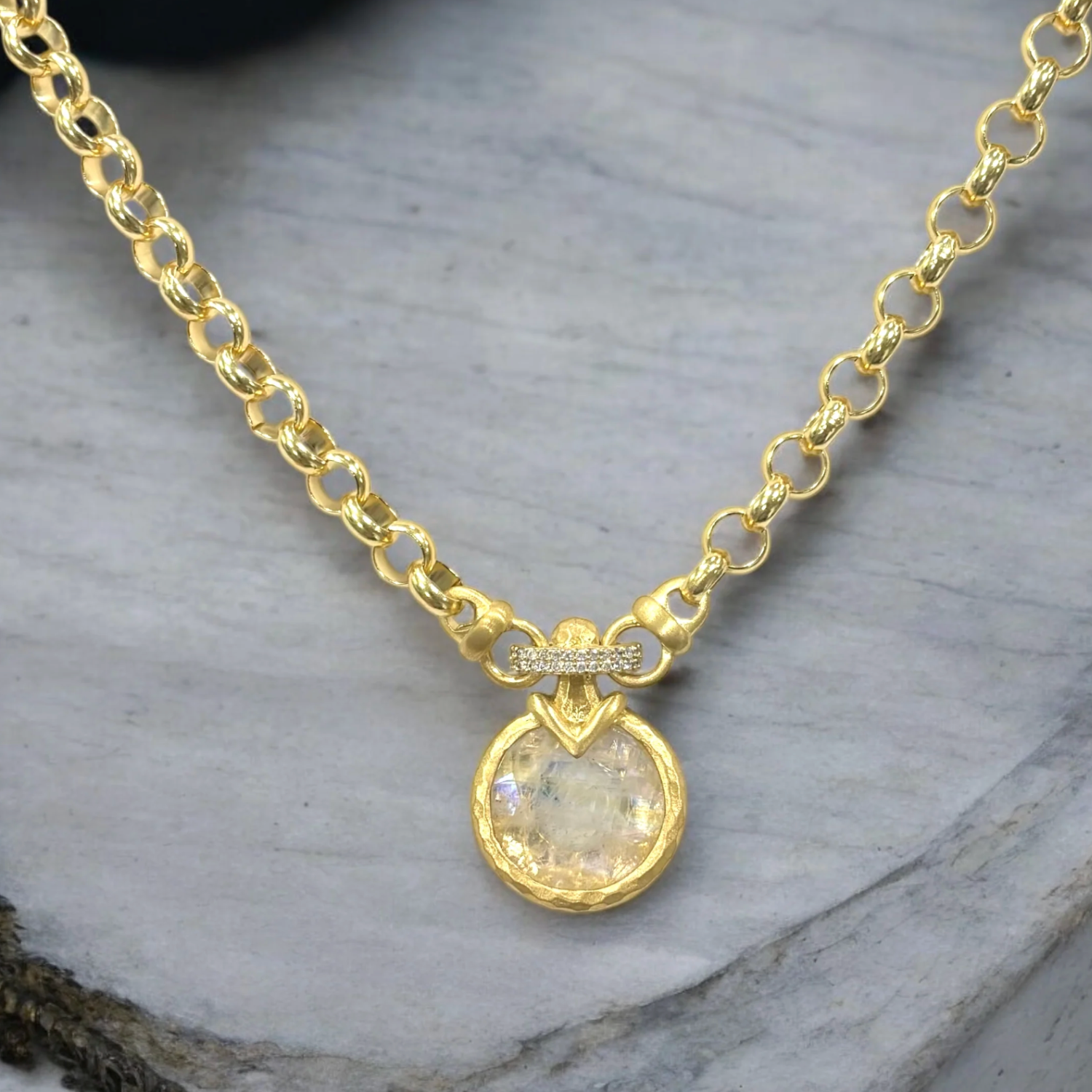 GOLD VECCHIO RAINBOW MOONSTONE NECKLACE