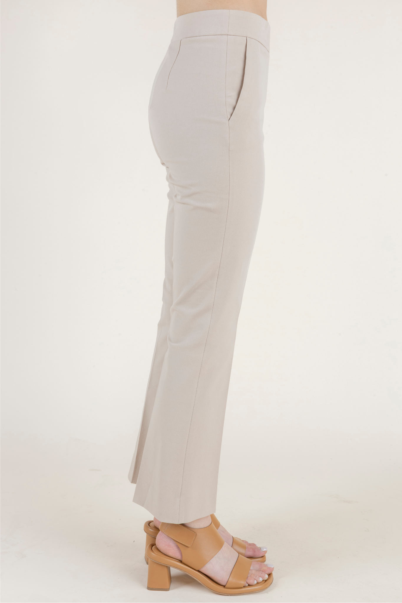 A modern essential with impeccable Italian tailoring, the Caldine Pants by Via Masini have quickly become a customer favorite for their flattering fit and effortless versatility. Designed with a clean flat front and discreet side zip, this streamlined silhouette creates a smooth, polished look that transitions seamlessly from day to evening. The slightly flared cropped leg adds a contemporary touch while elongating the silhouette, making these trousers equally elegant with sandals, heels, or loafers. Crafted from a soft cotton stretch, the Caldine offers exceptional comfort and flexibility while maintaining its refined structure throughout the day. Available in a range of timeless shades—including Quinoa, Navy, White, and Black—this versatile pant is destined to become a wardrobe staple season after season