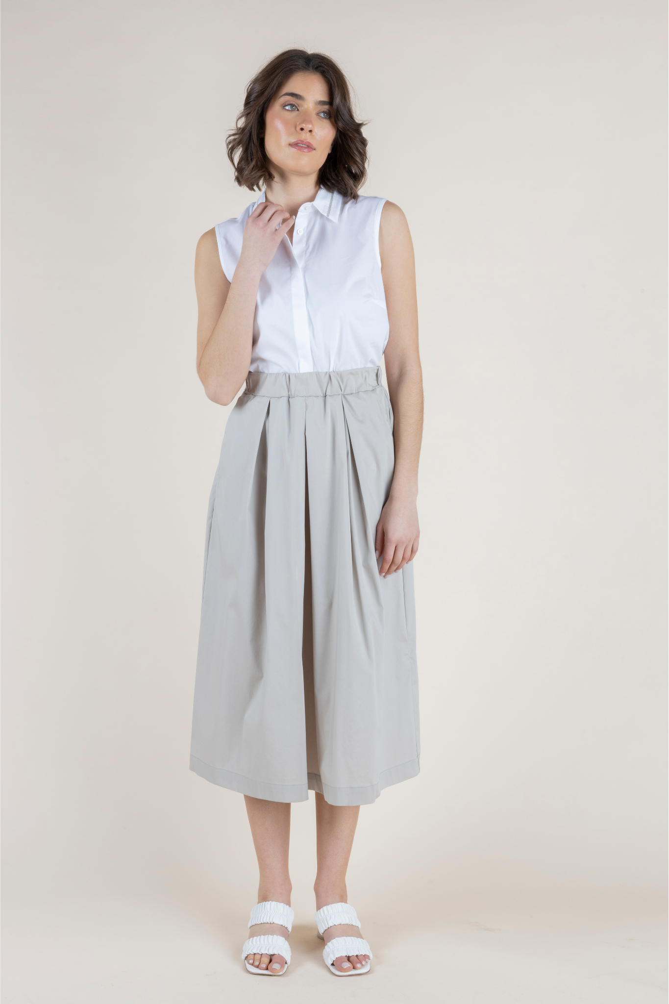Elegant structure meets everyday ease in the Dalmazia Skirt by Hubert Gasser. Crafted from a refined cotton blend, this midi-length silhouette features a softly structured waistband and clean front pleats that create graceful movement and a flattering, architectural drape. The neutral beige tone offers effortless versatility, pairing beautifully with crisp shirting, lightweight knits, or tailored jackets. Designed to balance comfort with polish, the fabric’s hint of stretch ensures a smooth fit that moves with you throughout the day. Timeless yet modern, the Dalmazia Skirt reflects the quiet sophistication and meticulous craftsmanship synonymous with Italian design